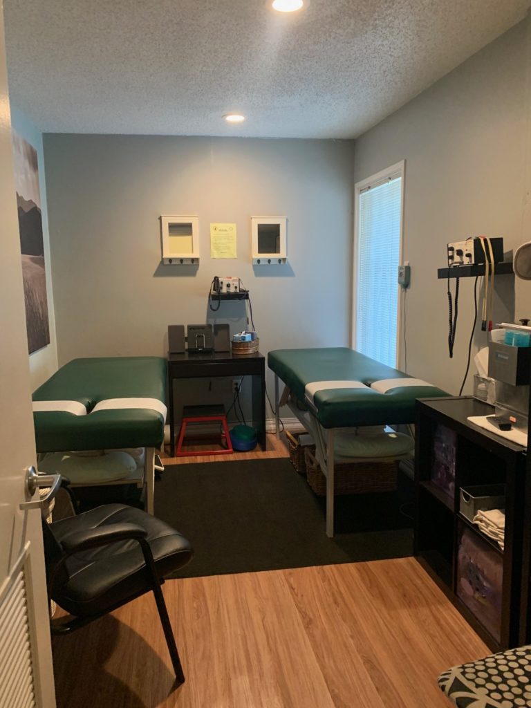 - Therapy Modalities/Area - normally, therapy modalities such as ultra-sound (US) or electric muscle stimulation (EMS) are performed in one central room in our office, however, during COVID-19 we have split up these spaces and only allow patients who share the same household to get US and or EMS at the same time, otherwise only one person is allowed in the therapy room at any given time, and we now have a second room for these therapies for patients to receive ultra-sound and/or EMS, should the therapy room already be occupied.